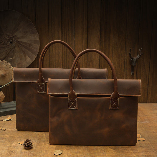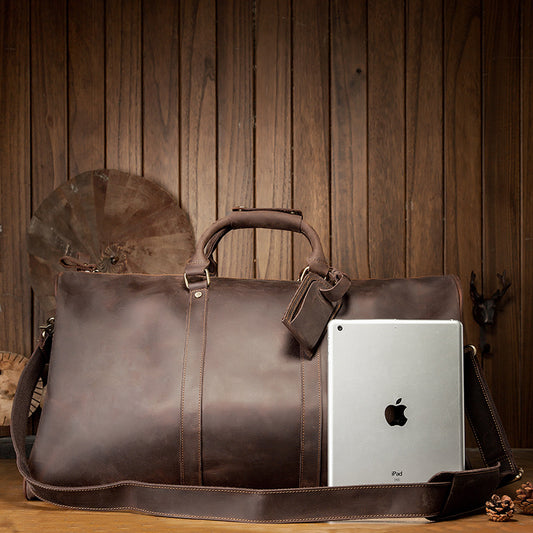 メンズ手提げかばん 手作業大きいサイズ 大容量 牛革本革製 クレイジー・ホース男性用旅行かばん