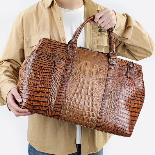 メンズ手提げかばん ワニの紋 牛皮 男女兼用 旅行かばん 短距離出張荷物かばん