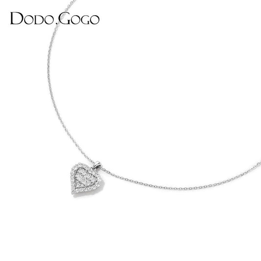 DODOGOGO純銀ジルコンハートネックレスレディースs925シルバー鎖骨チェーン2024新作ネックレス