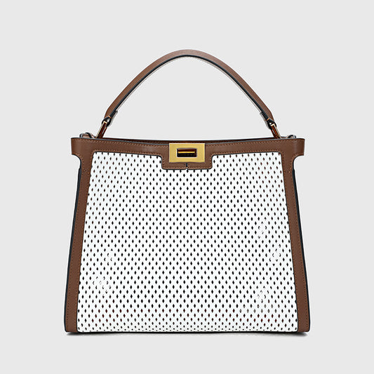 Casual large capacity cowhide openwork color ladies handbag crossbody bag goes with anything