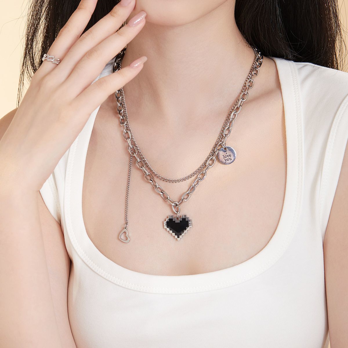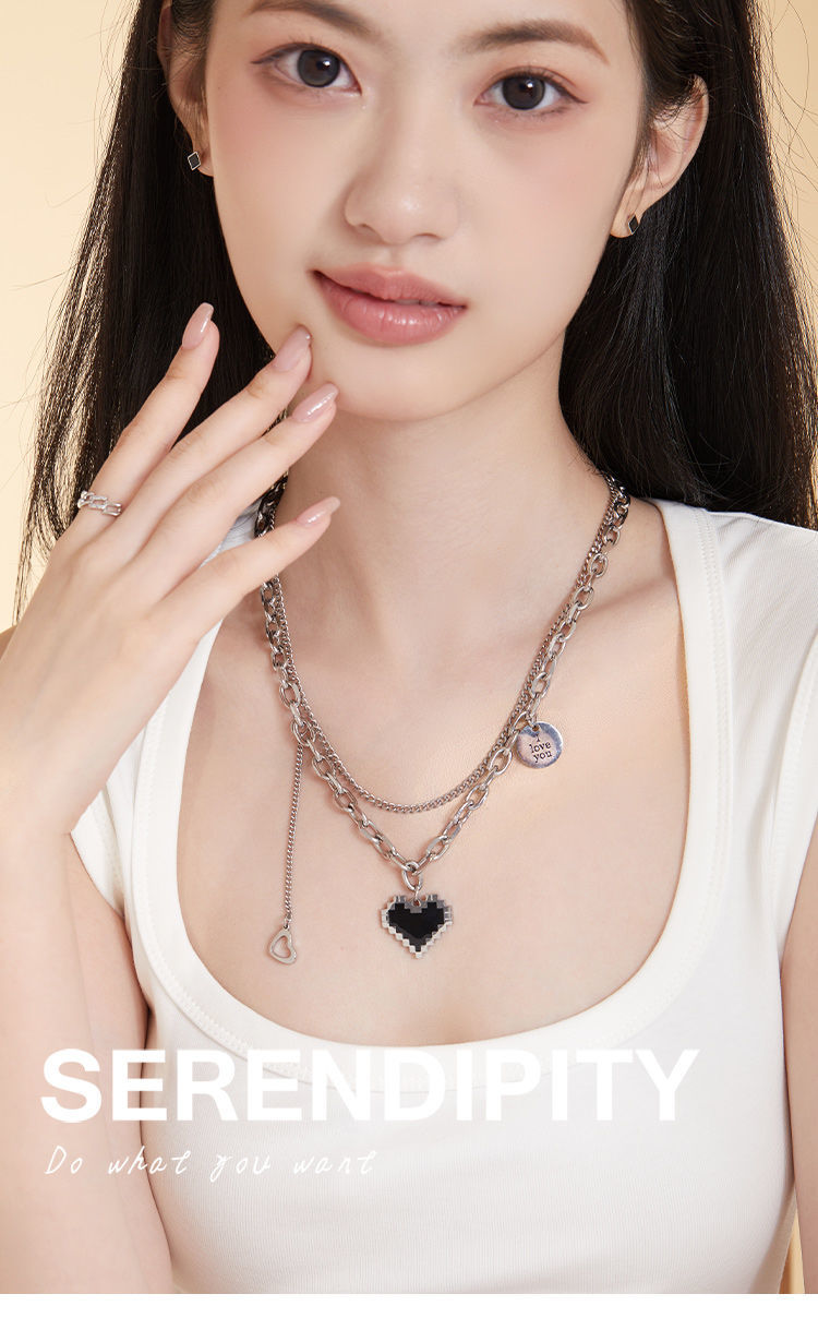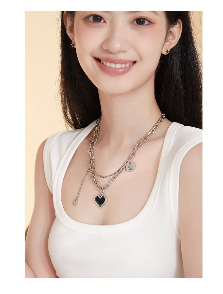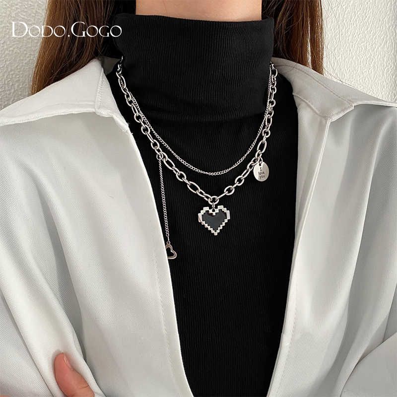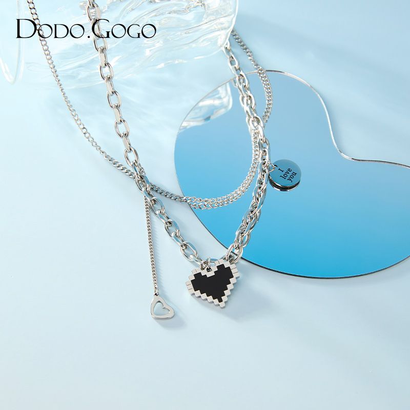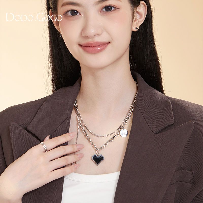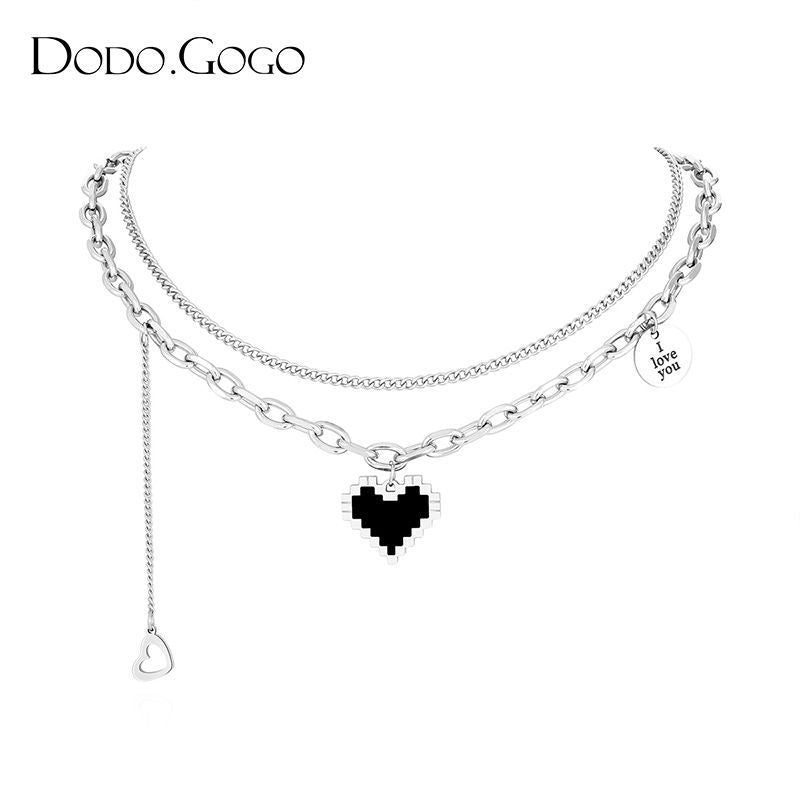 DODOGOGOチタンスチールハートネックレスレディースシンプルネックチェーン2024春夏新作ネックレス