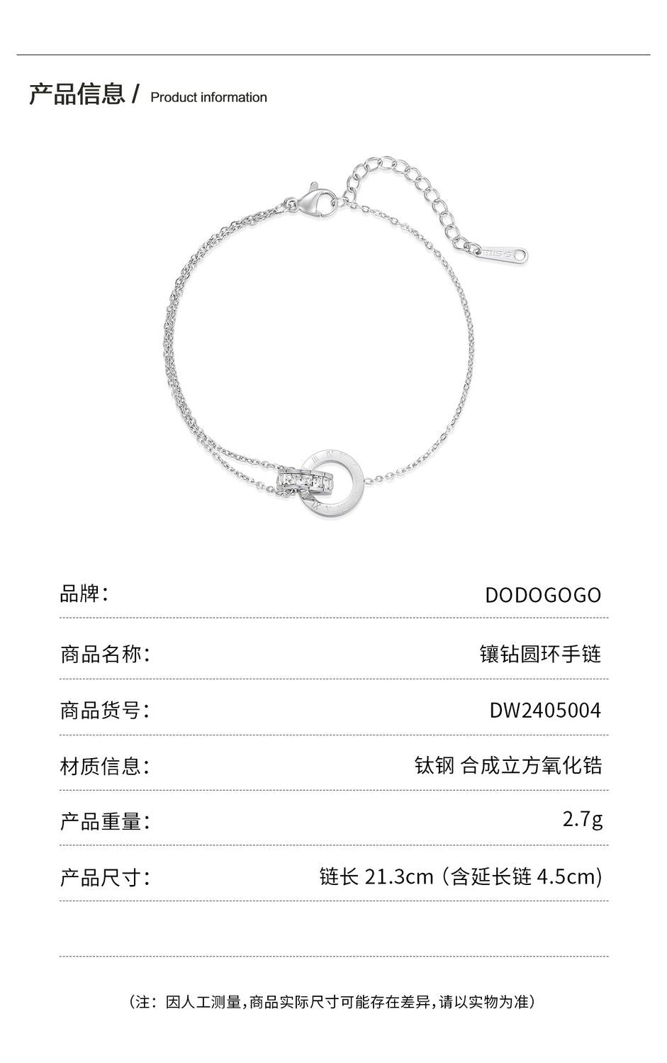 DODOGOGOローマのダブルリングブレスレット女性洗練された軽量贅沢ブレスレット2024秋冬新作ブレスレット