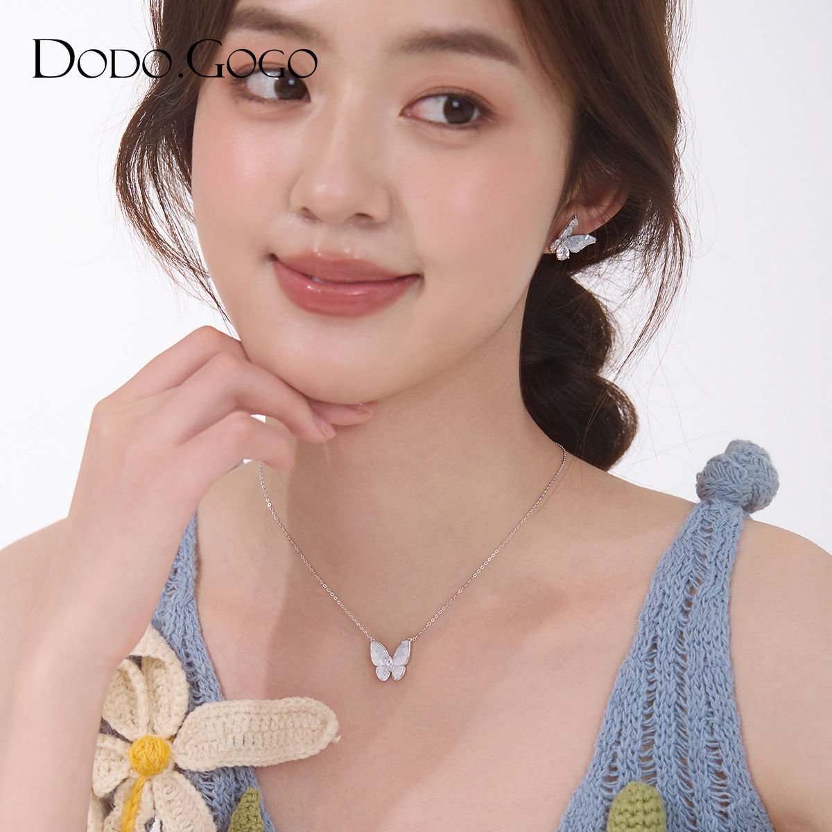 DODOGOGO バタフライジルコンネックレス女性2024秋冬新作軽量贅沢ネックチェーン